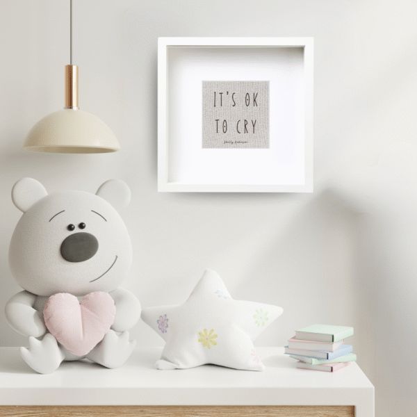 Silk Screen Print on Linen – 25×25 cm, Framed 27×27 cm